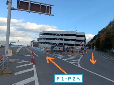 駐車カードを受け取ったら立体第2駐車場(P2)へ向かいます |